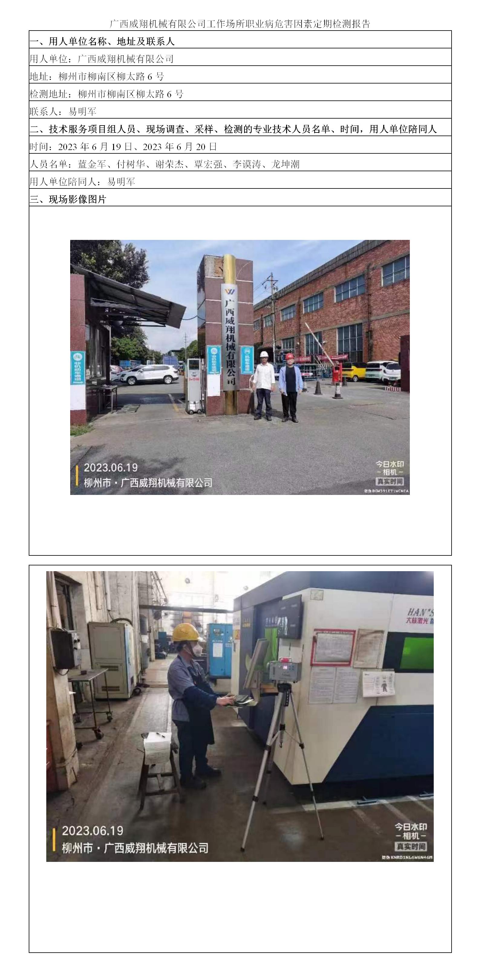 廣西威翔機械有限公司工作場所職業(yè)病危害因素定期檢測報告