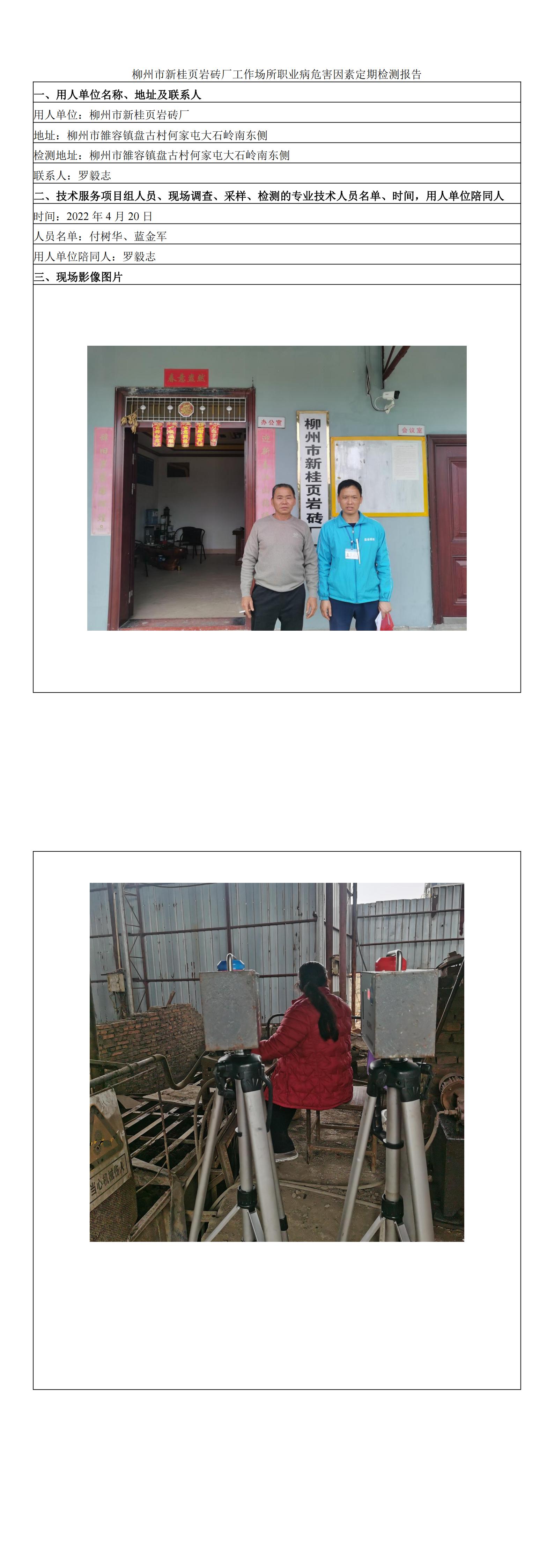 柳州市新桂頁(yè)巖磚廠工作場(chǎng)所職業(yè)病危害因素定期檢測(cè)報(bào)告