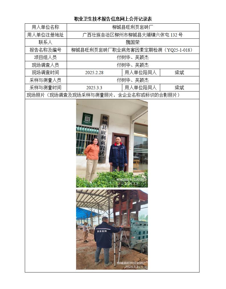 柳城縣旺利頁巖磚廠職業(yè)病危害因素定期檢測報(bào)告