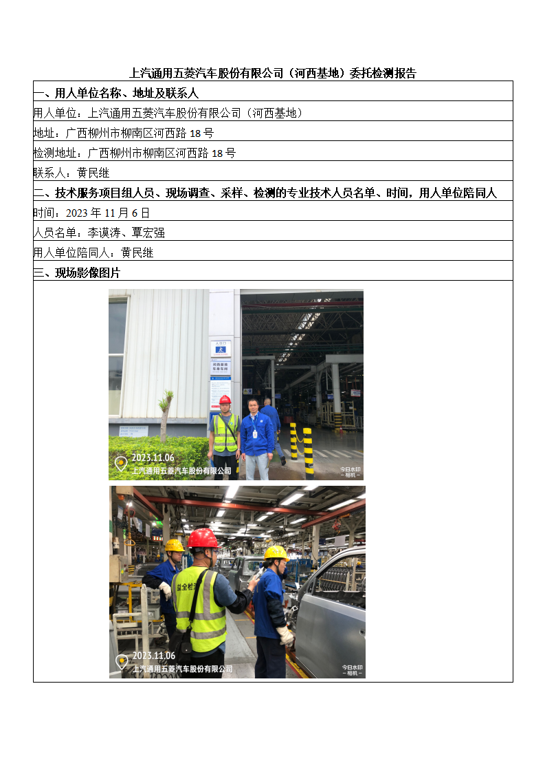 上汽通用五菱汽車股份有限公司(河西基地)委托檢測報告