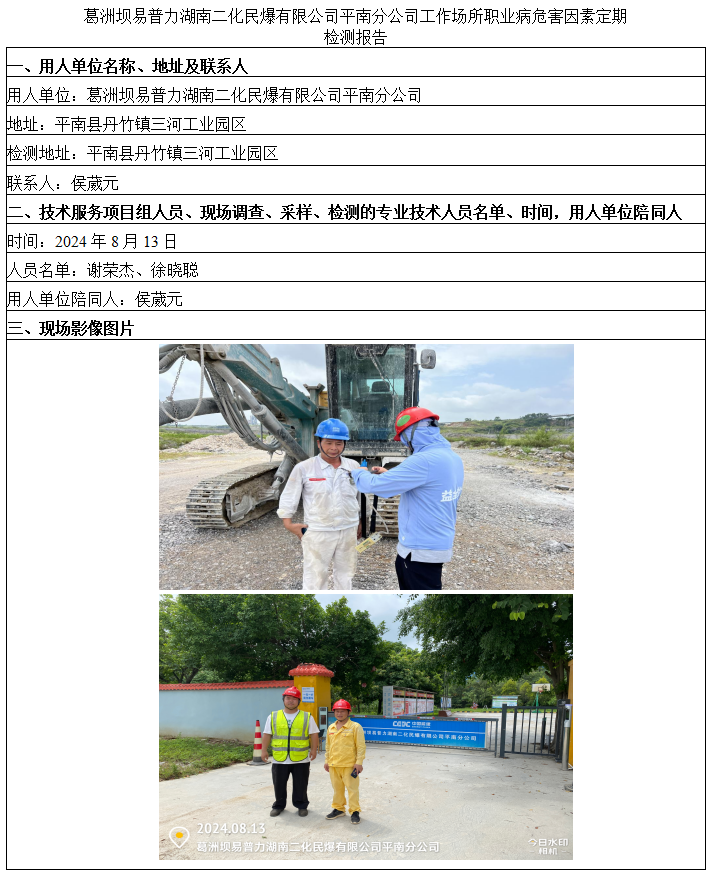 葛洲壩易普力湖南二化民爆有限公司平南分公司工作場(chǎng)所職業(yè)病危害因素定期檢測(cè)報(bào)告