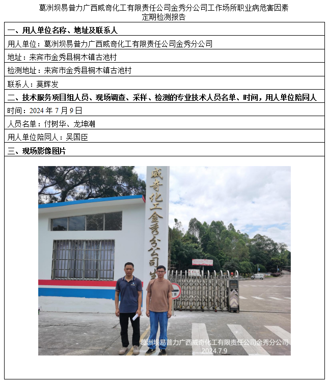 葛洲壩易普力廣西威奇化工有限責任公司金秀分公司工作場所職業(yè)病危害因素定期檢測報告
