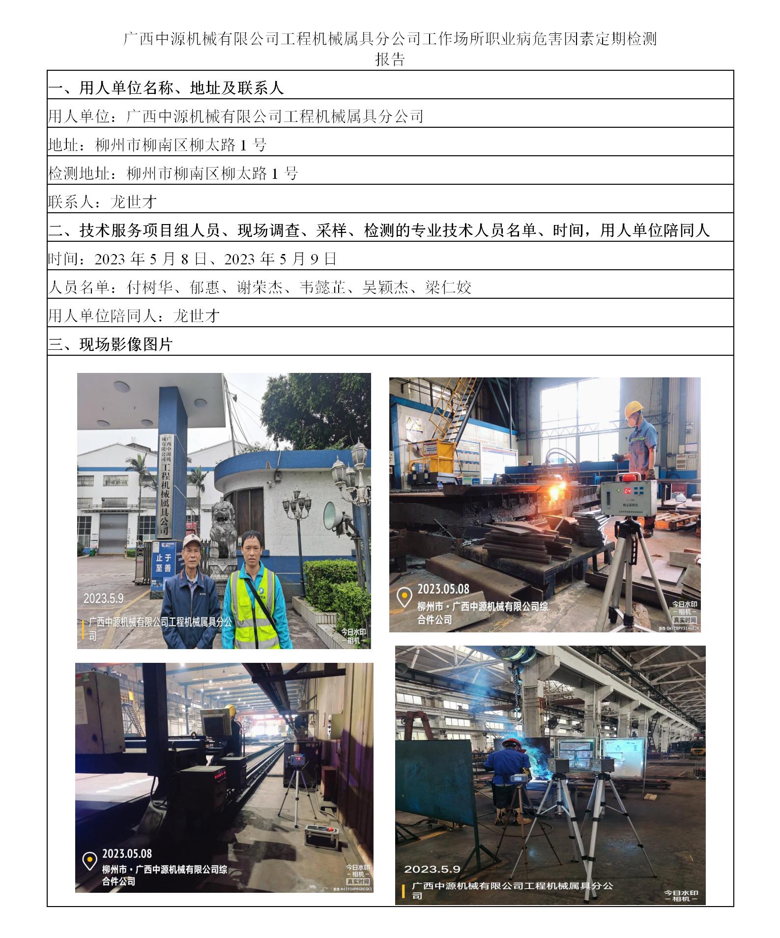 廣西中源機(jī)械有限公司工程機(jī)械屬具分公司工作場(chǎng)所職業(yè)病危害因素定期檢測(cè)報(bào)告