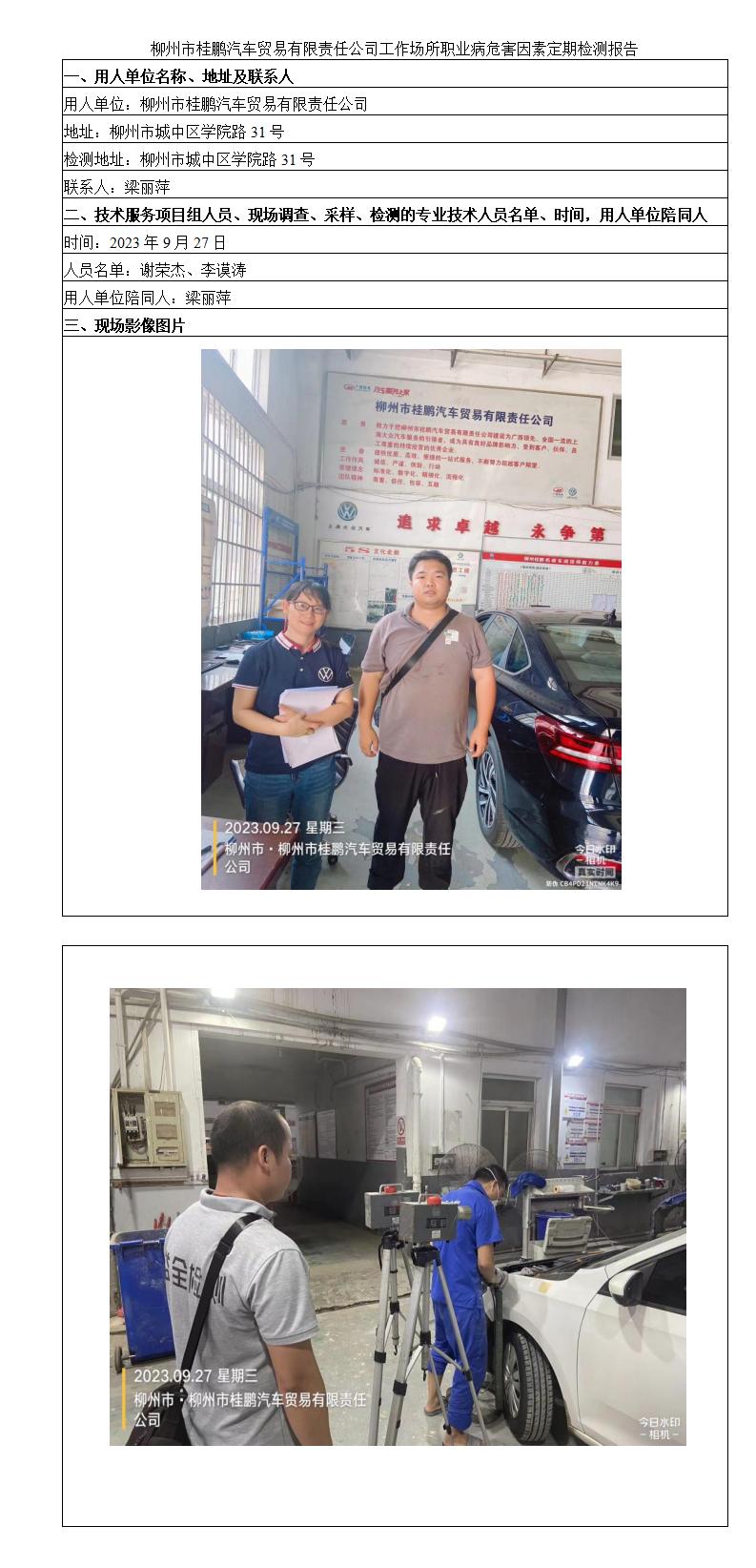 柳州市桂鵬汽車貿(mào)易有限責任公司工作場所職業(yè)病危害因素定期檢測報告