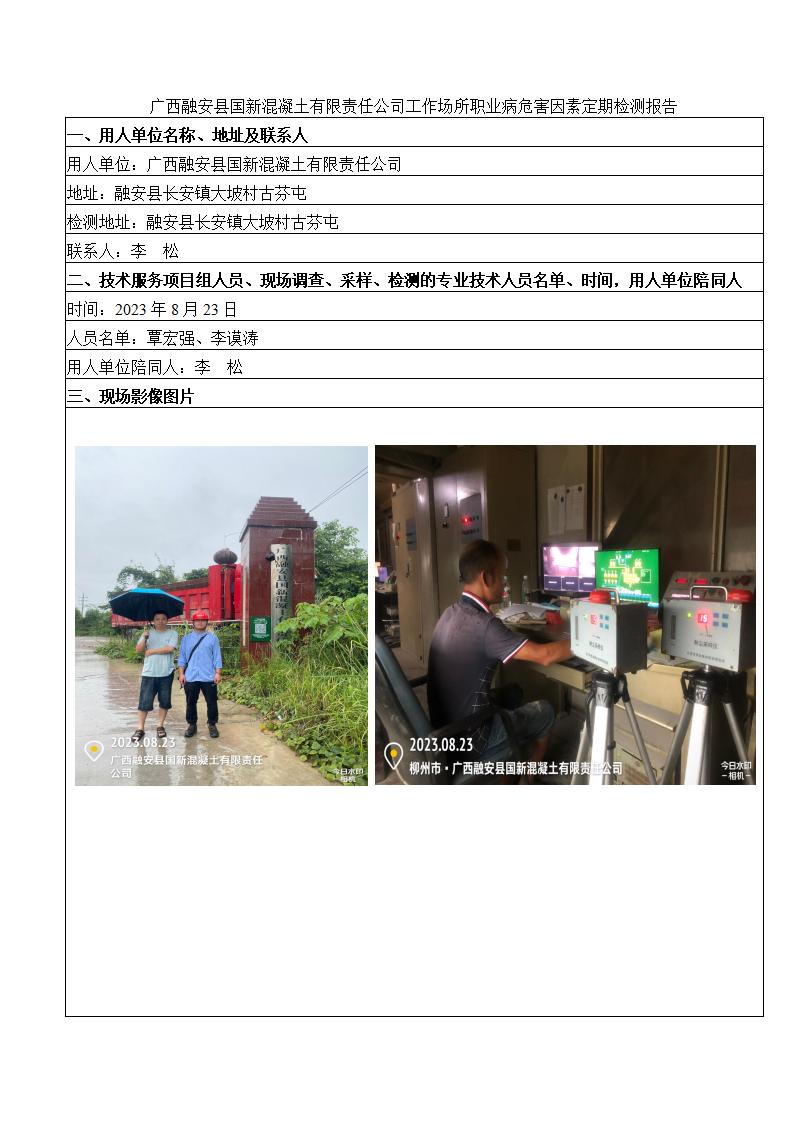 廣西融安縣國新混凝土有限責任公司工作場所職業(yè)病危害因素定期檢測報告