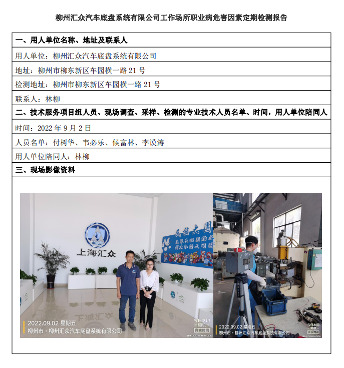柳州匯眾汽車底盤系統(tǒng)有限公司工作場所職業(yè)病危害因素定期檢測報告
