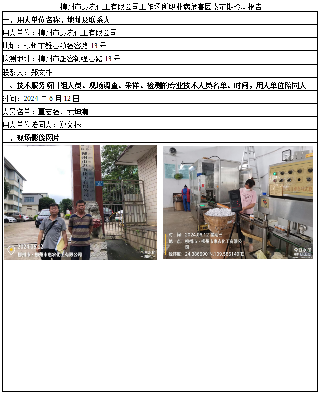 柳州市惠農(nóng)化工有限公司工作場所職業(yè)病危害因素定期檢測報告