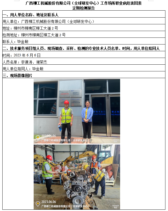 廣西柳工機械股份有限公司(全球研發(fā)中心) 定期檢測報告