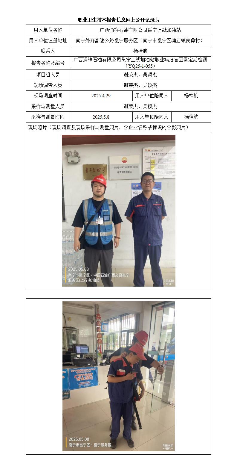 廣西通祥石油有限公司邕寧上線加油站職業(yè)病危害因素定期檢測