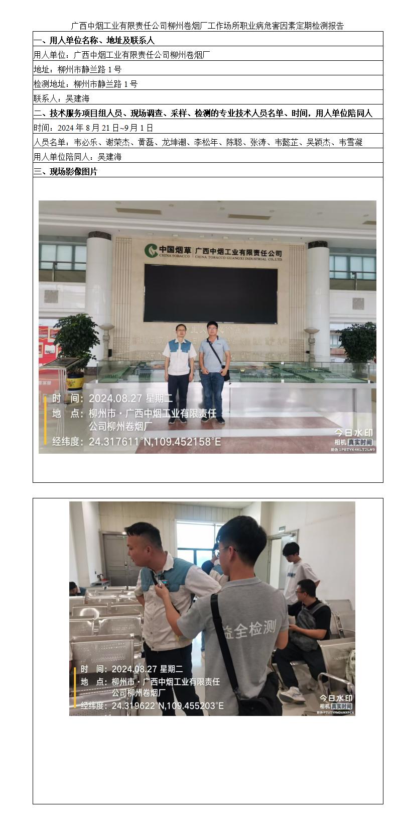 廣西中煙工業(yè)有限責(zé)任公司柳州卷煙廠工作場所職業(yè)病危害因素定期檢測報告