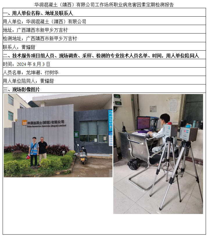 華潤(rùn)混凝土(靖西)有限公司工作場(chǎng)所職業(yè)病危害因素定期檢測(cè)報(bào)告