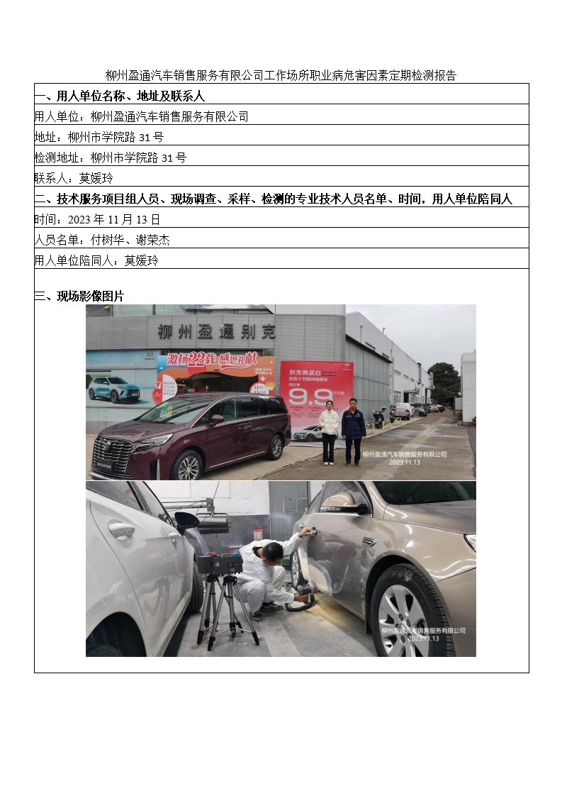 柳州盈通汽車銷售服務(wù)有限公司工作場(chǎng)所職業(yè)病危害因素定期檢測(cè)報(bào)告