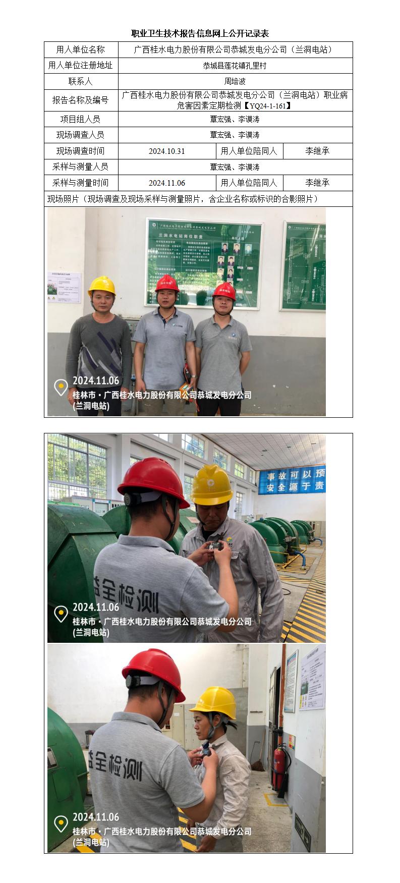 廣西桂水電力股份有限公司恭城發(fā)電分公司(蘭洞電站)職業(yè)病危害因素定期檢測(cè)報(bào)告