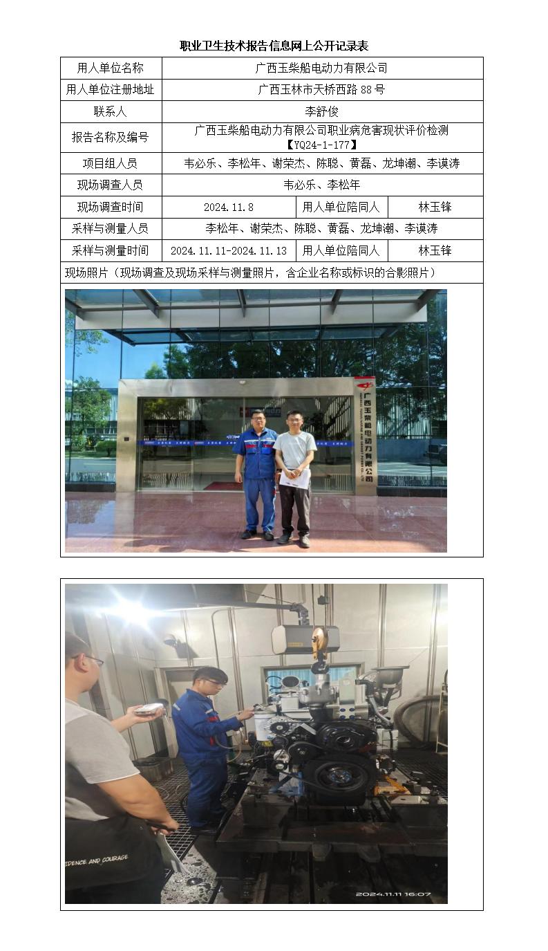 廣西玉柴船電動(dòng)力有限公司職業(yè)病危害現(xiàn)狀評(píng)價(jià)檢測(cè)報(bào)告