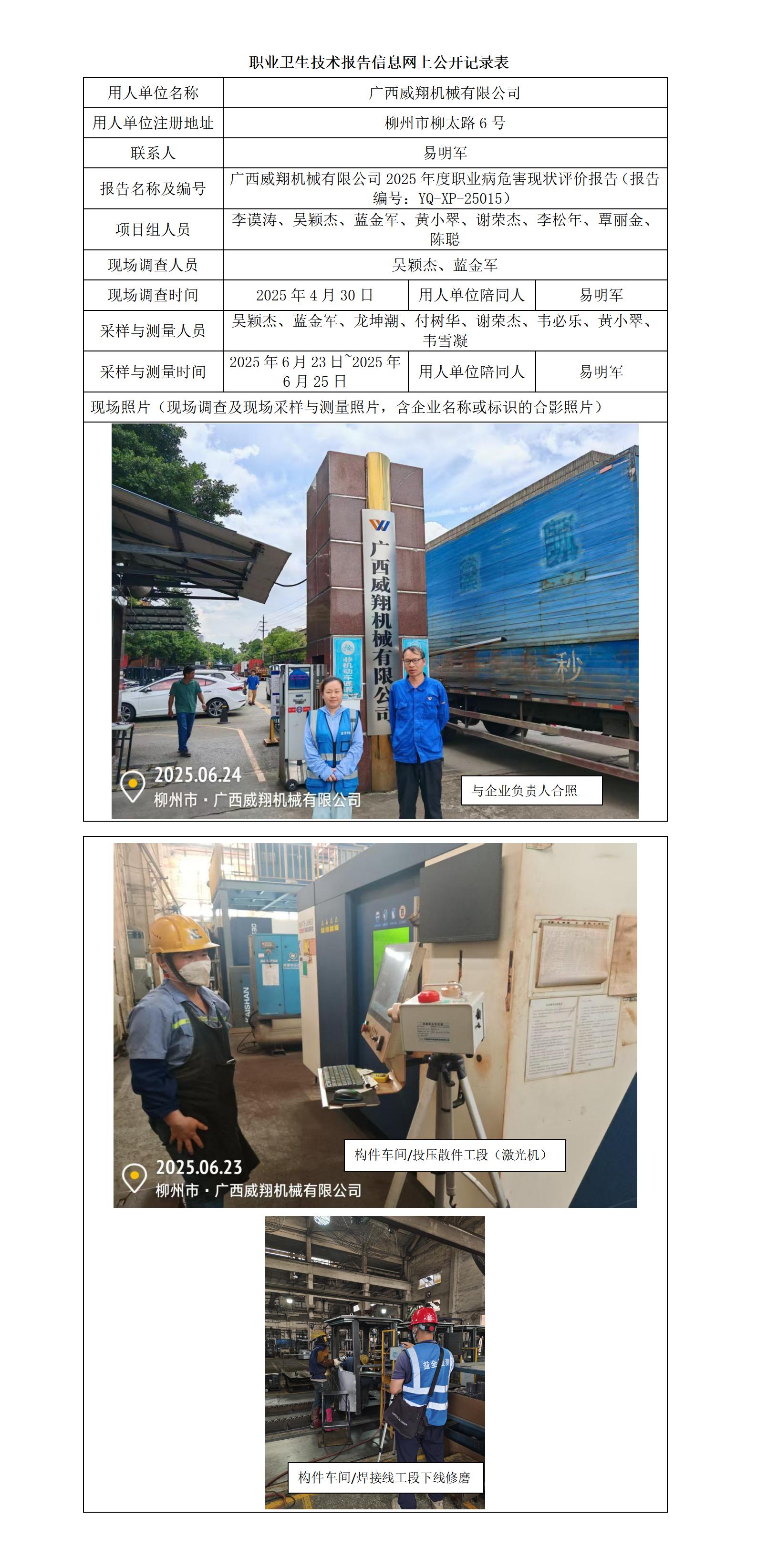 廣西威翔機(jī)械有限公司2025年度職業(yè)病危害現(xiàn)狀評價報告