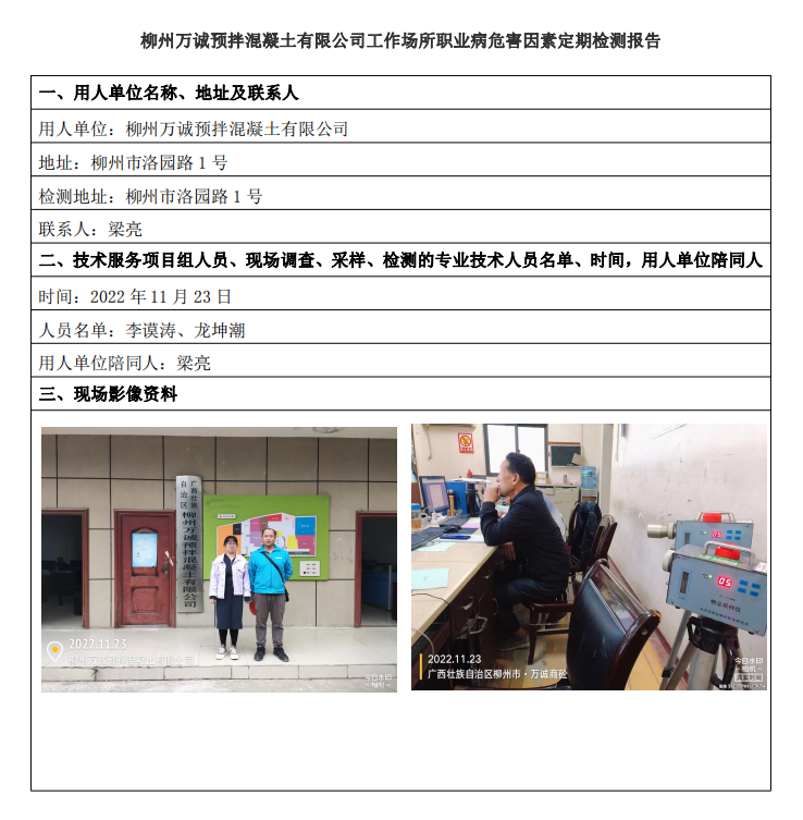 柳州萬(wàn)誠(chéng)預(yù)拌混凝土有限公司工作場(chǎng)所職業(yè)病危害因素定期檢測(cè)報(bào)告