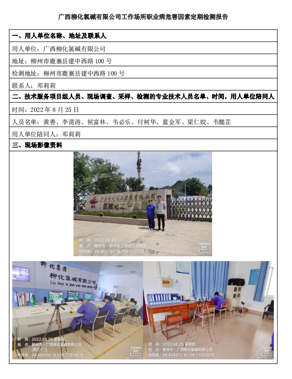 廣西柳化氯堿有限公司工作場所職業(yè)病危害因素定期檢測報告