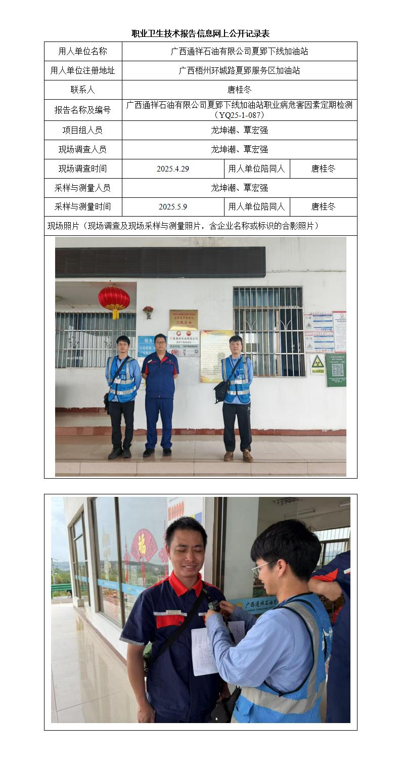 廣西通祥石油有限公司夏郢下線加油站職業(yè)病危害因素定期檢測