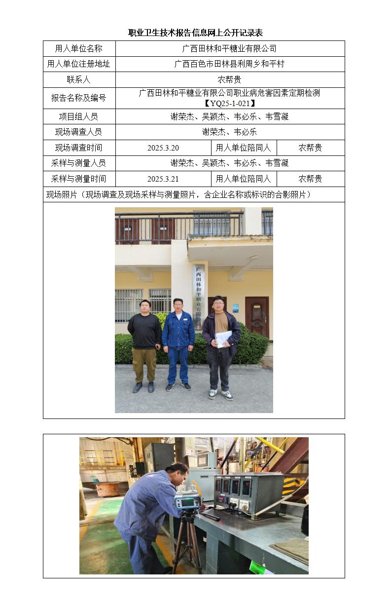 廣西田林和平糖業(yè)有限公司職業(yè)病危害因素定期檢測(cè)報(bào)告