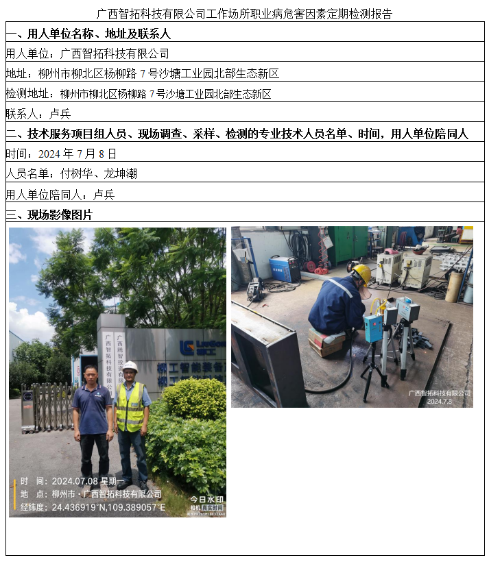 廣西智拓科技有限公司工作場所職業(yè)病危害因素定期檢測報告