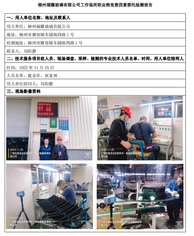 柳州福耀玻璃有限公司工作場所職業(yè)病危害因素委托檢測報(bào)告