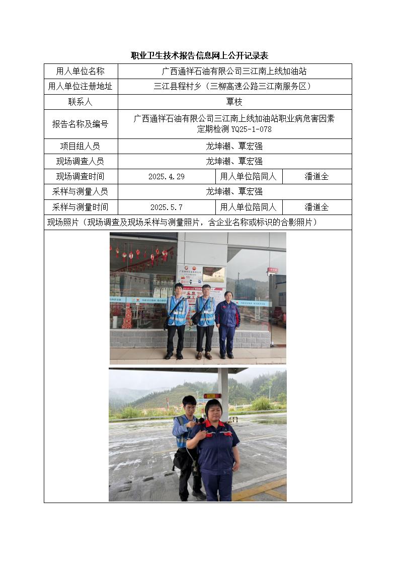 廣西通祥石油有限公司三江南上線加油站職業(yè)病危害因素定期檢測