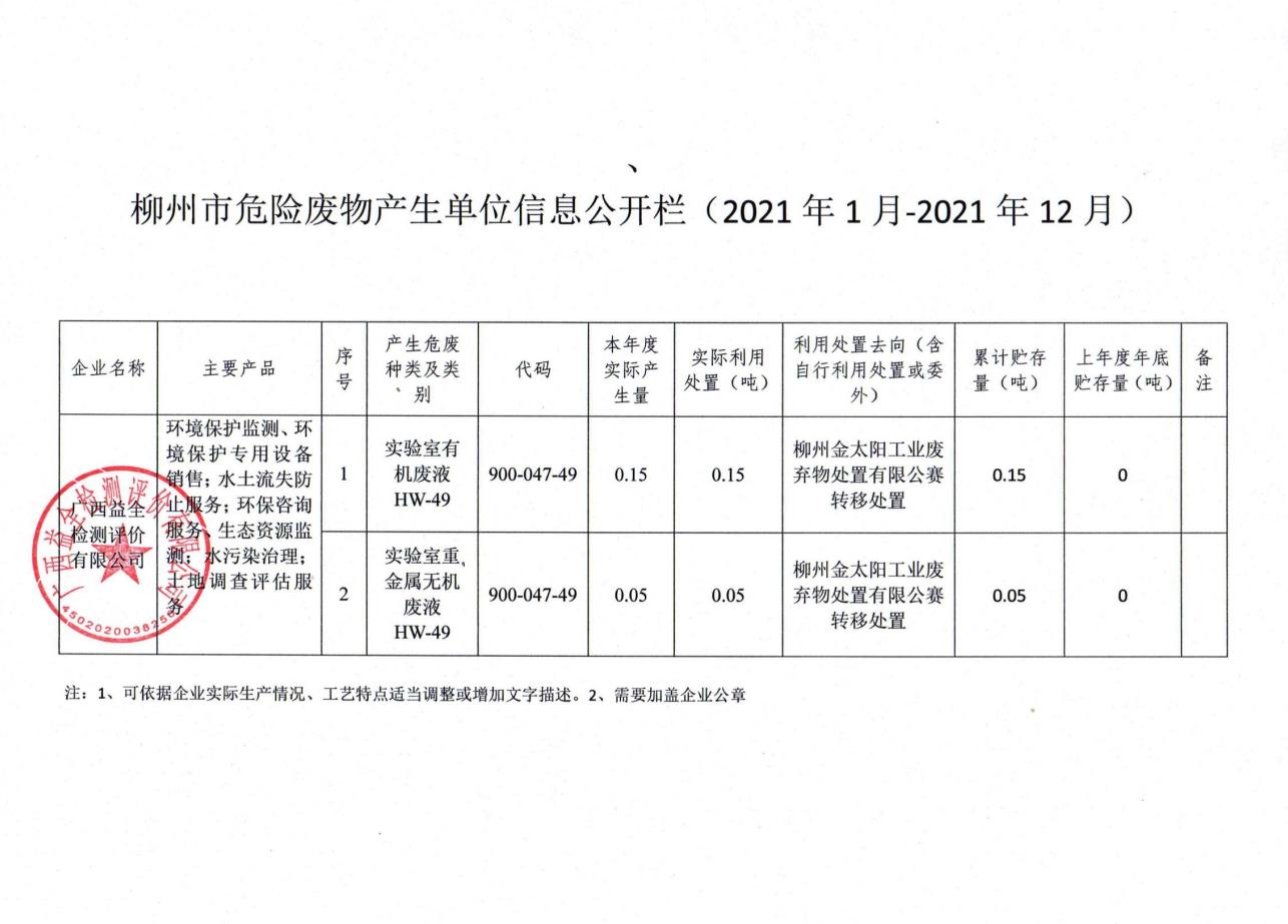 柳州市危險(xiǎn)廢物產(chǎn)生單位信息公開(kāi)欄(2021年1月-2021年12月)