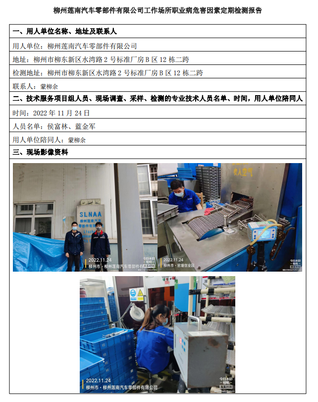 柳州蓮南汽車零部件有限公司工作場所職業(yè)病危害因素定期檢測報告