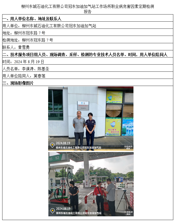 柳州東城石油化工有限公司冠東加油加氣站工作場所職業(yè)病危害因素定期檢測報(bào)告