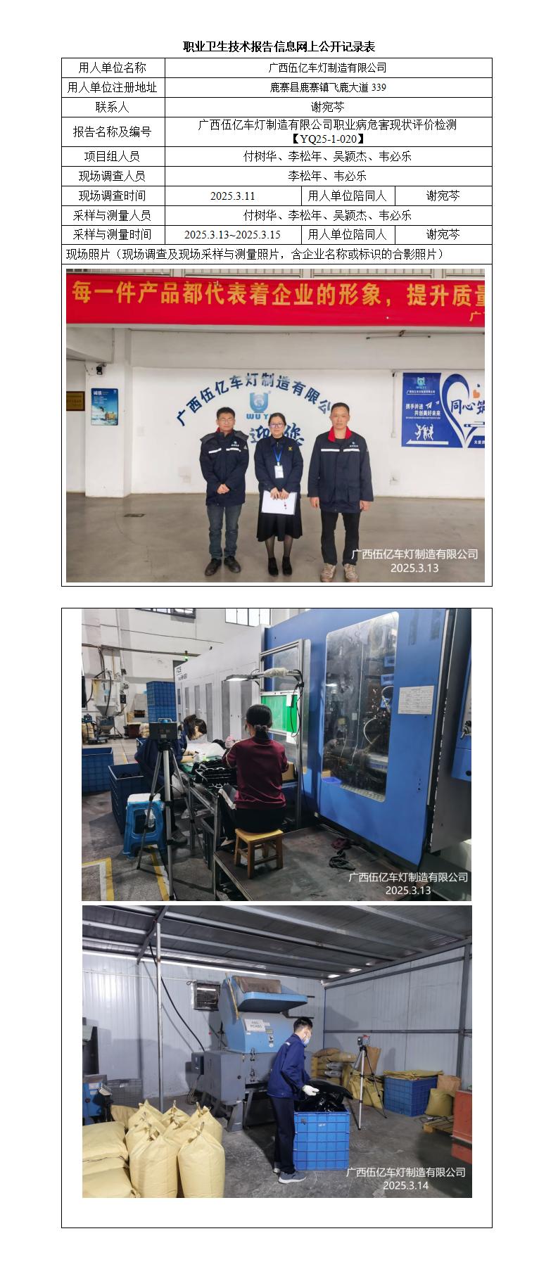 廣西伍億車燈制造有限公司職業(yè)病危害現(xiàn)狀評價檢測報告