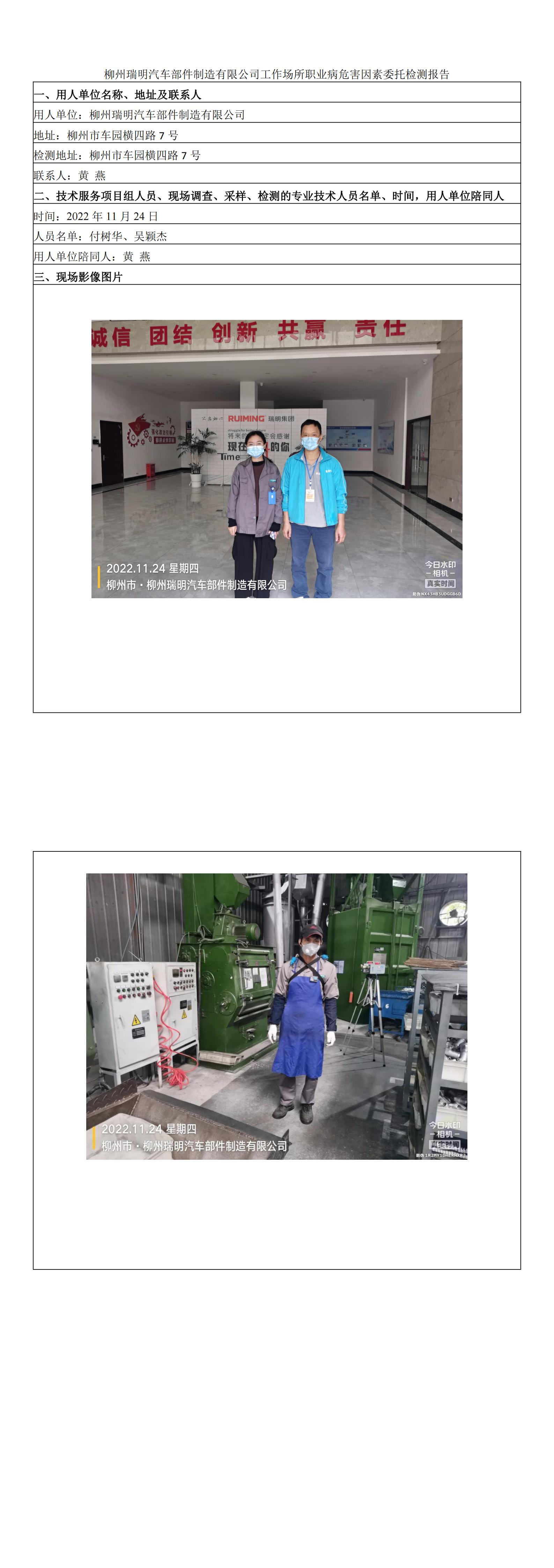 柳州瑞明汽車部件制造有限公司工作場所職業(yè)病危害因素委托檢測報告