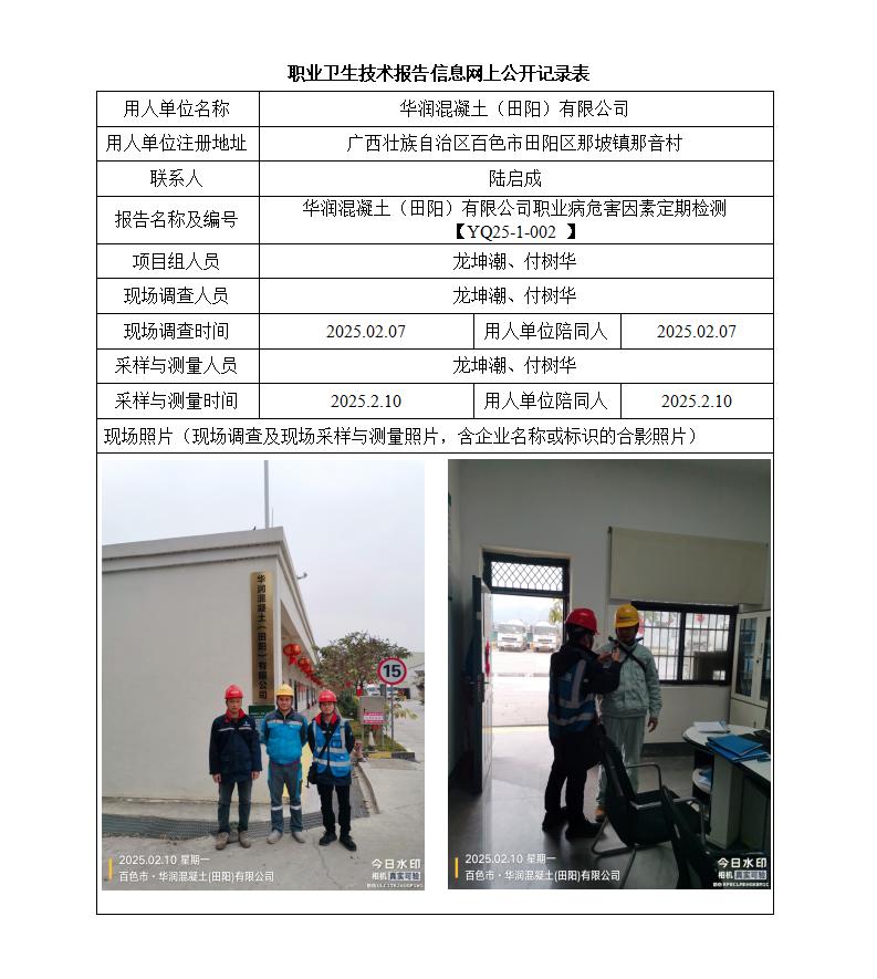 華潤(rùn)混凝土(田陽(yáng))有限公司職業(yè)病危害因素定期檢測(cè)報(bào)告