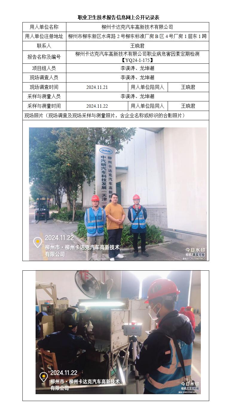 柳州卡達(dá)克汽車高新技術(shù)有限公司職業(yè)病危害因素定期檢測(cè)報(bào)告