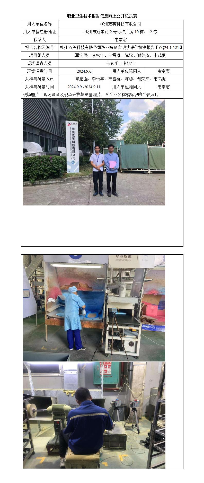 柳州雙英科技有限公司職業(yè)病危害現(xiàn)狀評(píng)價(jià)檢測(cè)報(bào)告