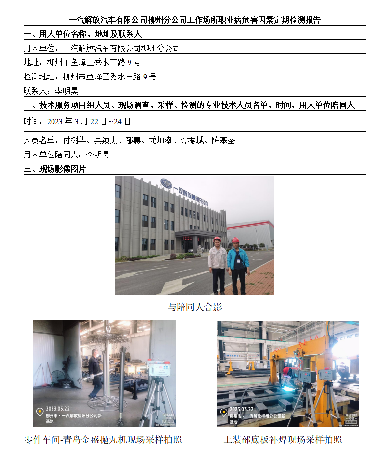 一汽解放汽車有限公司柳州分公司工作場(chǎng)所職業(yè)病危害因素定期檢測(cè)報(bào)告