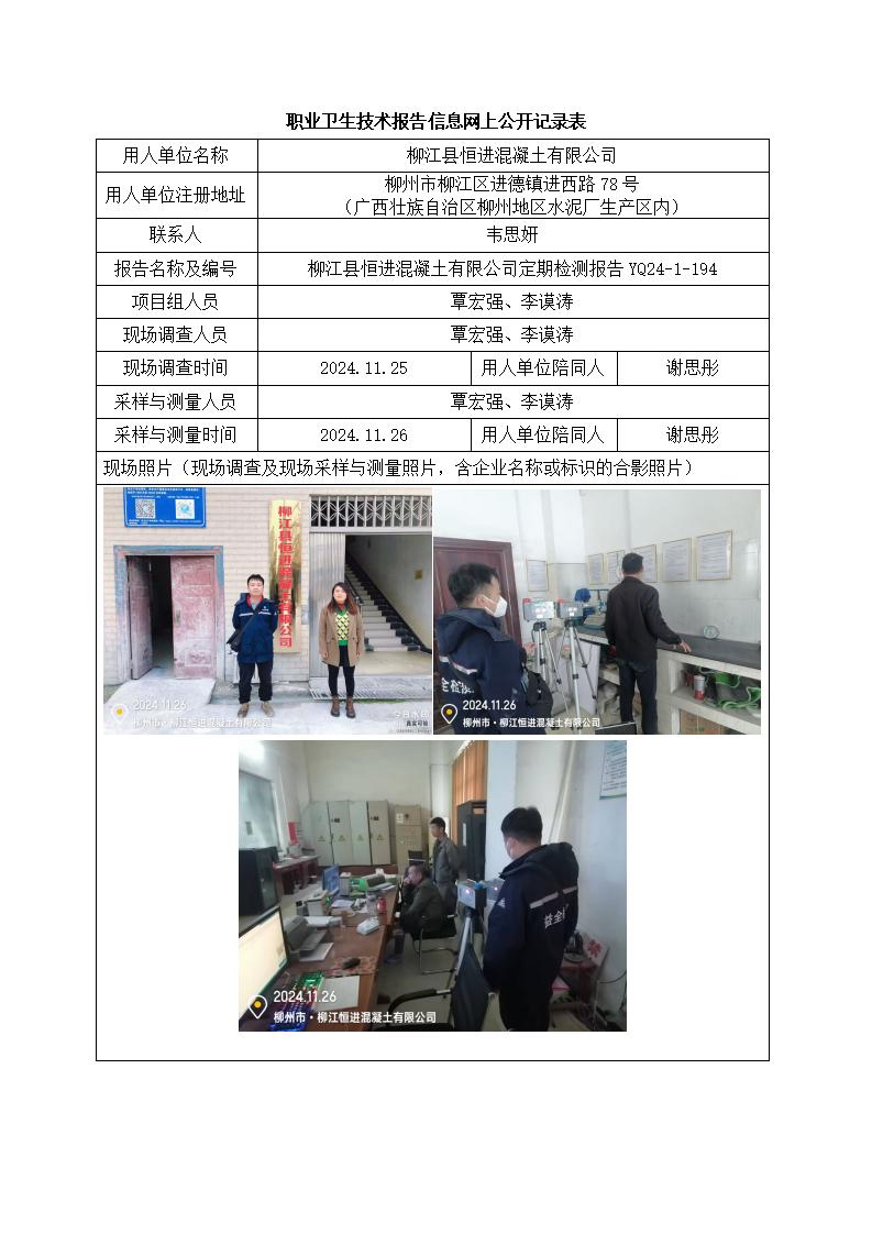 柳江縣恒進(jìn)混凝土有限公司定期檢測報告