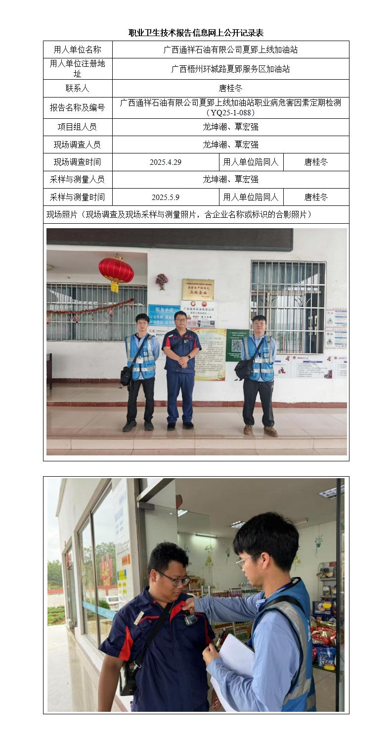 廣西通祥石油有限公司夏郢上線加油站職業(yè)病危害因素定期檢測