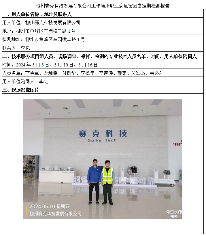 柳州賽克科技發(fā)展有限公司工作場(chǎng)所職業(yè)病危害因素定期檢測(cè)報(bào)告