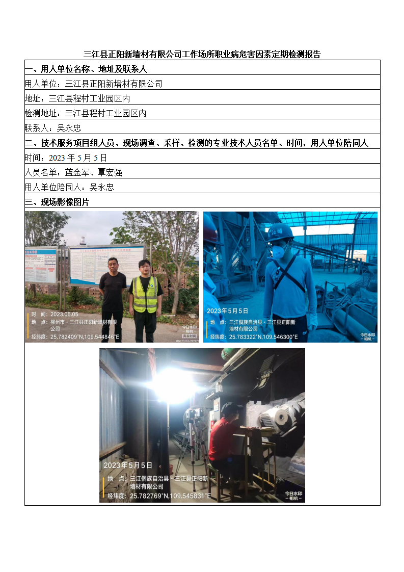 三江縣正陽新墻材有限公司工作場所職業(yè)病危害因素定期檢測報告