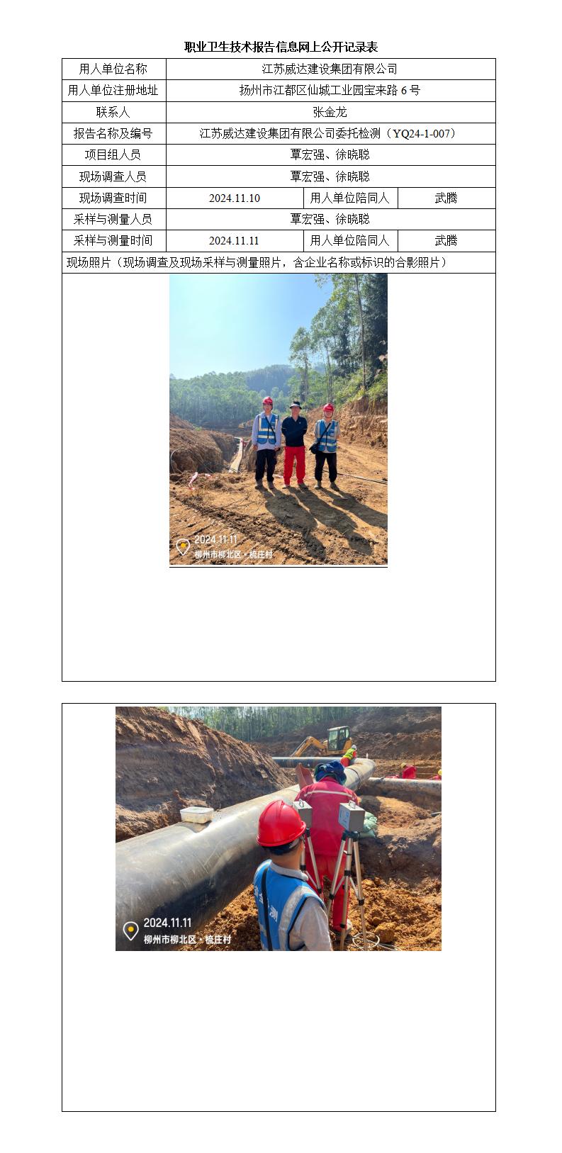 江蘇威達(dá)建設(shè)集團(tuán)有限公司職業(yè)病危害因素委托檢測報告