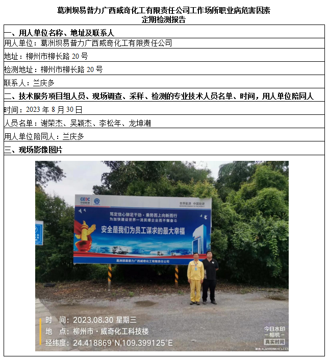 葛洲壩易普力廣西威奇化工有限責(zé)任公司工作場(chǎng)所職業(yè)病危害因素定期檢測(cè)報(bào)告