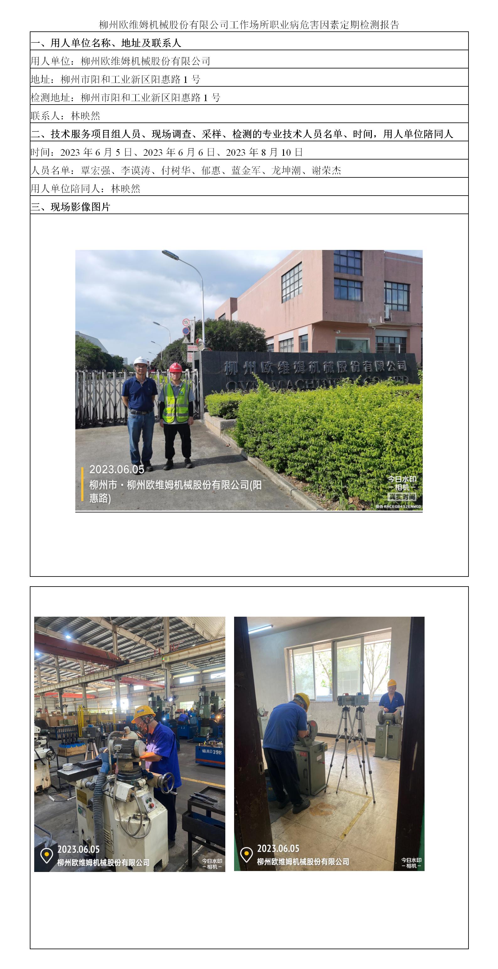 柳州歐維姆機(jī)械股份有限公司工作場(chǎng)所職業(yè)病危害因素定期檢測(cè)報(bào)告