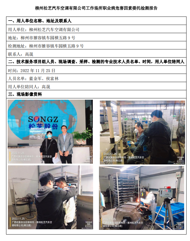 柳州松芝汽車空調(diào)有限公司工作場所職業(yè)病危害因素委托檢測報告