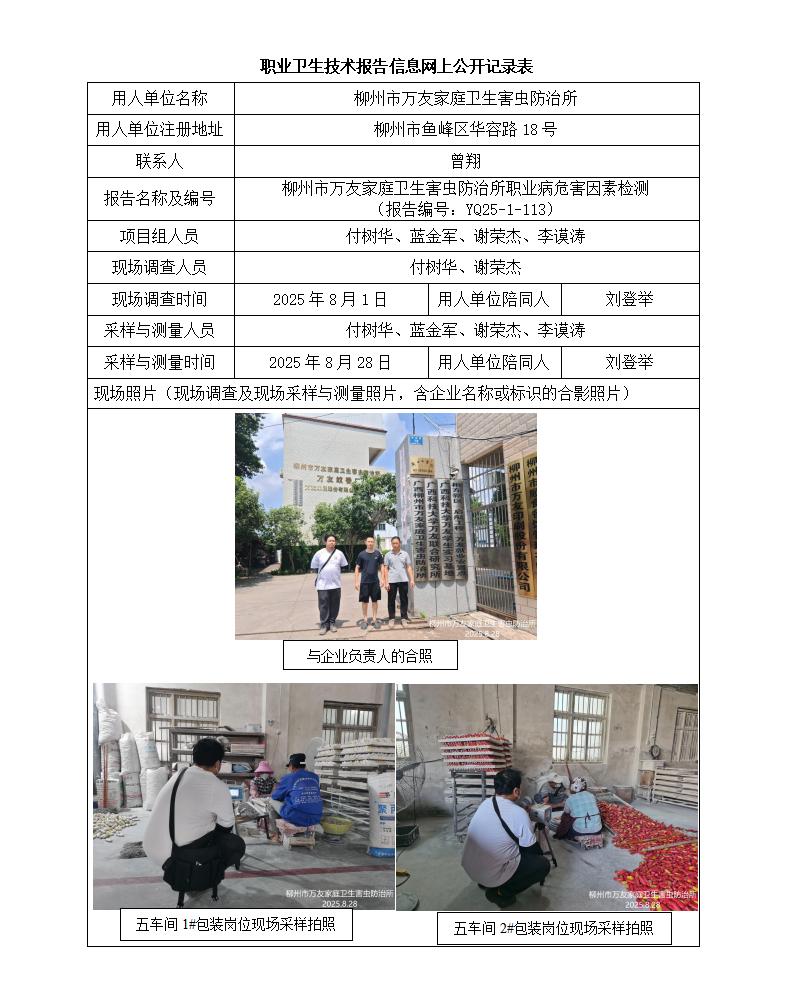 柳州市萬友家庭衛(wèi)生害蟲防治所職業(yè)病危害因素檢測 (報告編號:YQ25-1-113)