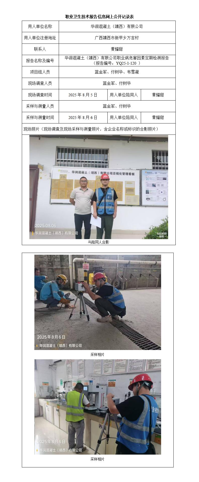 華潤(rùn)混凝土(靖西)有限公司職業(yè)病危害因素定期檢測(cè)報(bào)告信息網(wǎng)上公開記錄表